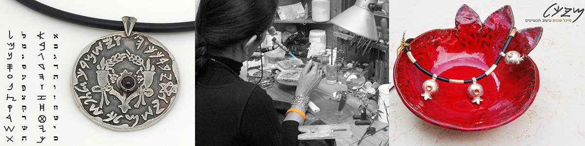 'בסטודיו מיכל' מגוון של תכשיטים: קולקציה של תכשיטים מעולם הטבע, סדרת תכשיטי רימונים וקולקציית תכשיטי יודאיקה.
