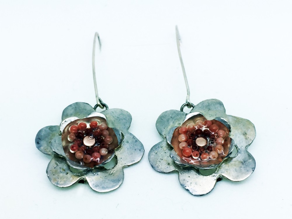 עגילי פרח חום-ורוד (קומתיים קטן)