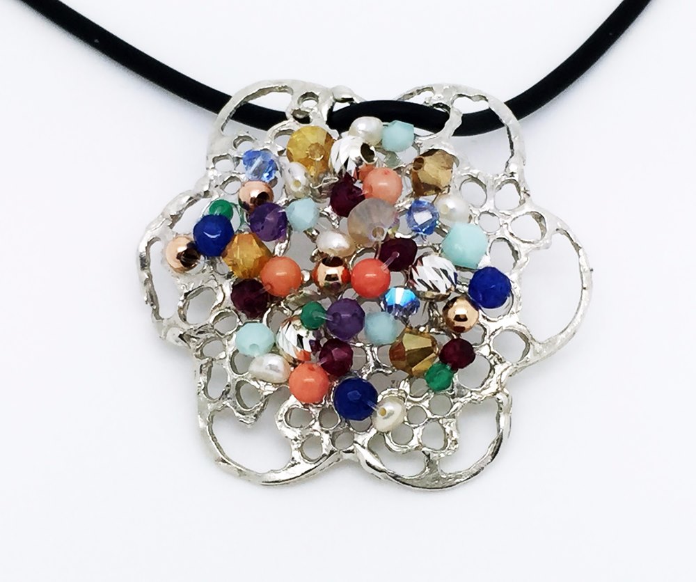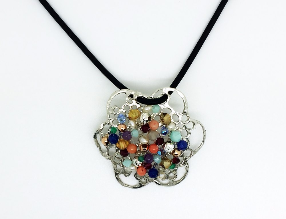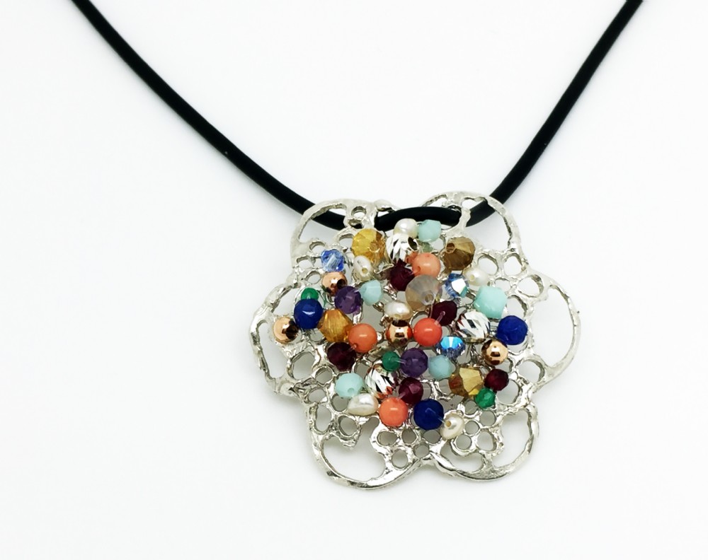 שרשרת פרח תחרה צבעוני עם אבני חן